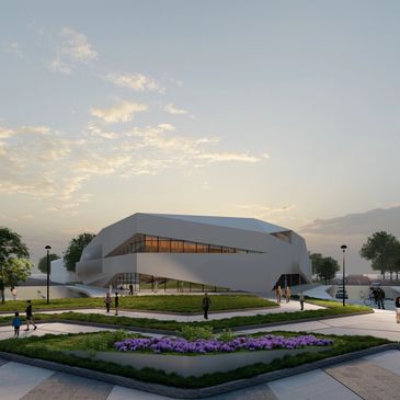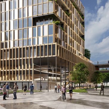 The architecture utilizes sustainable material such as wood and BIPV solar panels
